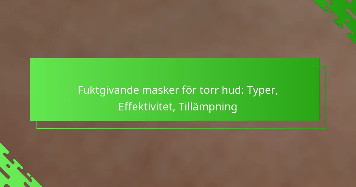 Återfuktande masker för torr hud är specialiserade hudvårdsprodukter som är utformade för att ge intensiv återfuktning och näring. De finns i olika former såsom tygmasker, krämmasker, gelmasker och nattmasker, och de riktar sig mot torrhet och förbättrar hudens struktur. För optimala resultat är det viktigt att rengöra huden innan applicering och följa den rekommenderade tiden för varje masktyp.